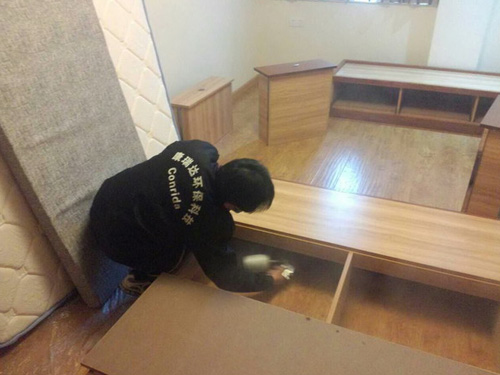 在治理的全过程中,康瑞达工程师使用超过6种不同的药剂对空间进行处理,使用药剂对需要处理的家具及装修面均匀喷洒它和物体内部的有害物质发生吸附、降解反应,最终矿化成二氧化碳和水,做到对甲醛的无害化降解。不同材质所采用的药剂也是不同的,其中对家具喷洒白色乳状液体蜡,即除醛纳米蜡。纳米蜡喷洒到板材、家具、地板、电器表面会形成一种半透膜,可使甲醛、氨、苯、TVOC降解,而且还具有保护家具漆膜的作用。